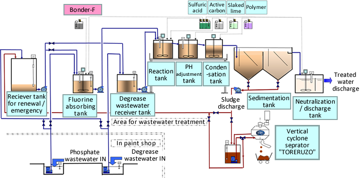 Parker Engineering can propose the optimized wastewater treatment system in cooperation with Nihon Parkerizing, the chemical supplier.